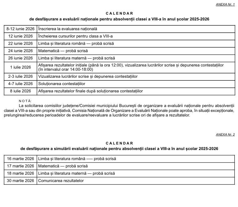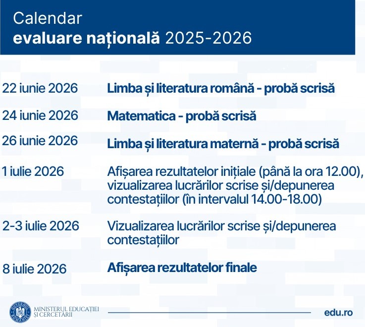 Calendar Evaluare Nationala clasa a VIII a iunie 2026